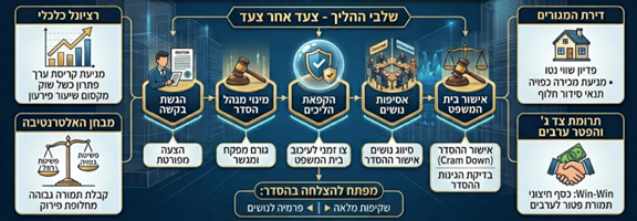 • דיווח לבית המשפט על תוצאות האסיפות והמלצה על אישור ההסדר.