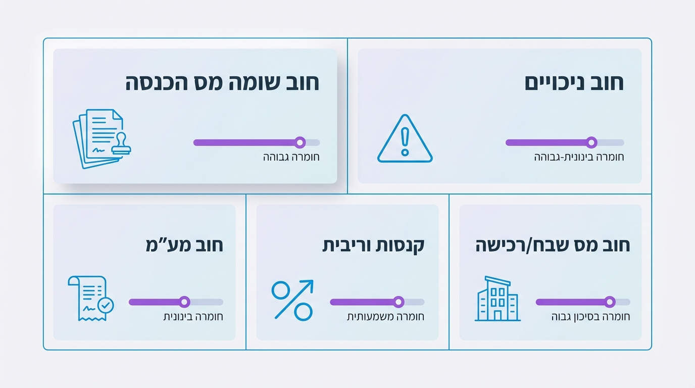 ההבחנה בין סוגי החובות חיונית כי היא קובעת את הגישה. חוב ניכויים, למשל, נחשב חמור יותר מאחר שמדובר בכספים שנוכו מעובדים ולא הועברו. לעומת זאת, חוב שמקורו בשומה עשוי להיות פתוח לערעור אם אתה סבור שהחיוב שגוי.